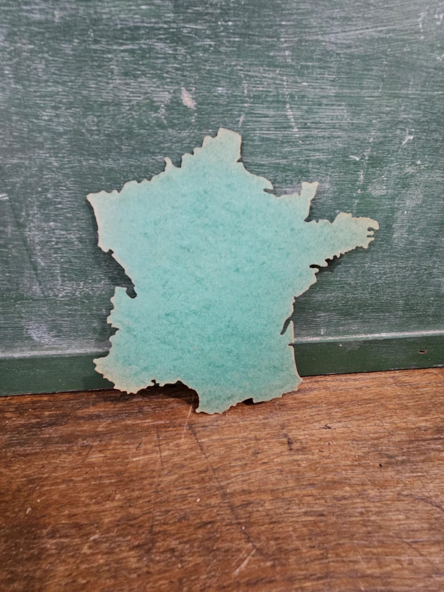 Carte de France d'écolier : Enfant, voilà ton pays. Outil d'apprentissage, gabarit en carton distribué aux écoliers à la fin de la première guerre mondiale, avec les frontières actualisées. Carte de France pour apprendre l'histoire et la géographie . Cartographe S.G.E. Editions Educatives Paris. Dimensions 16x16cm.