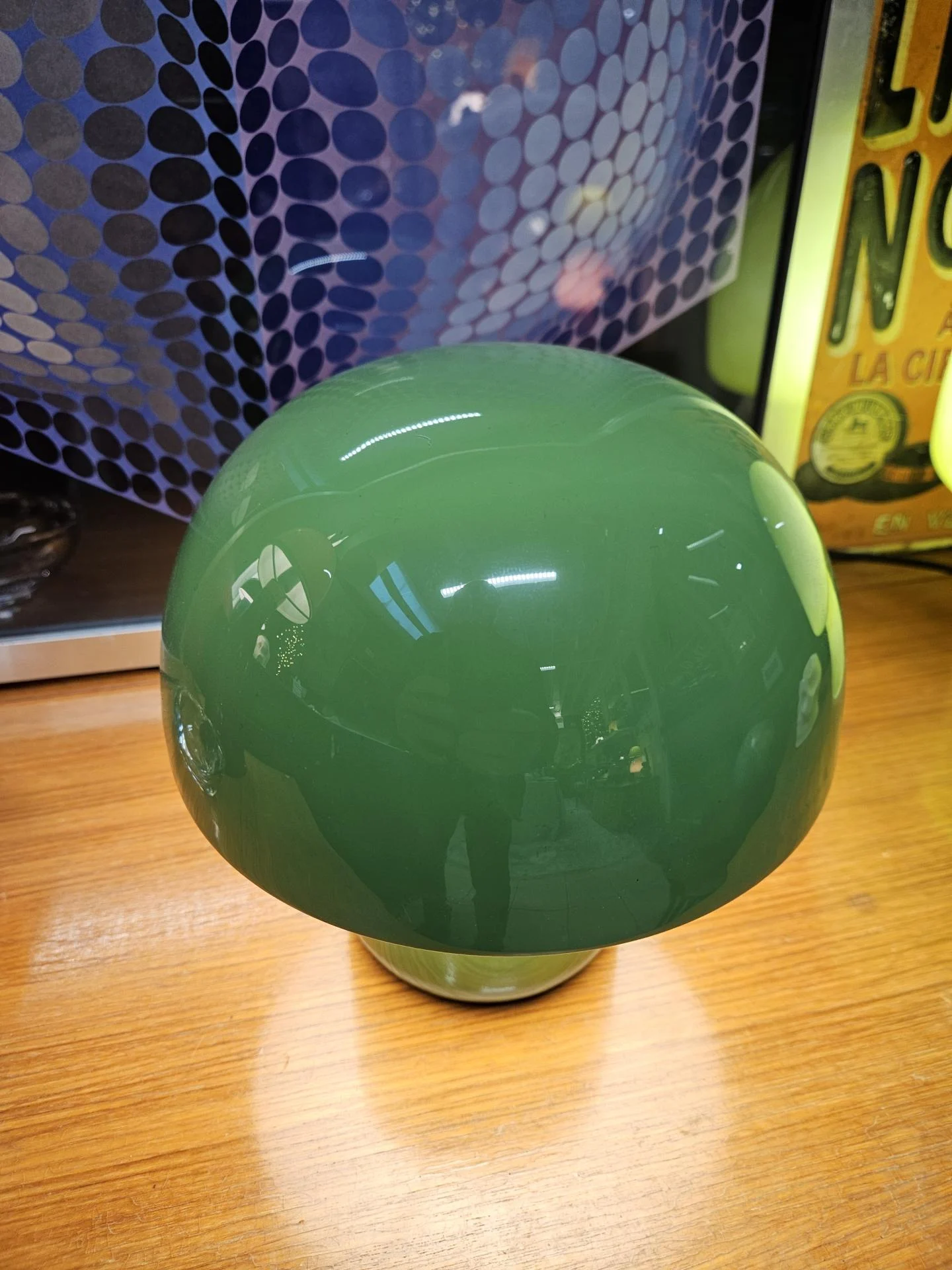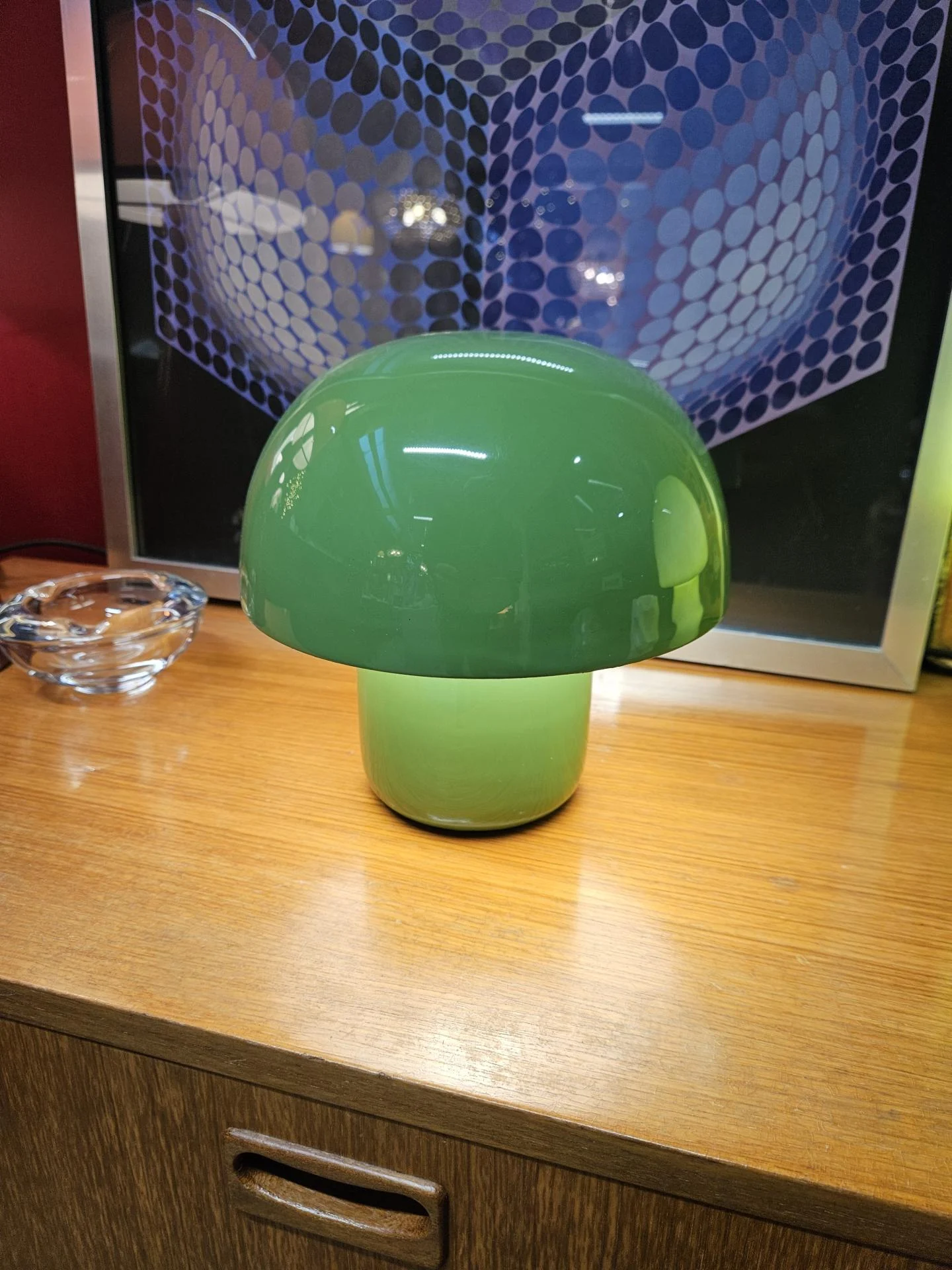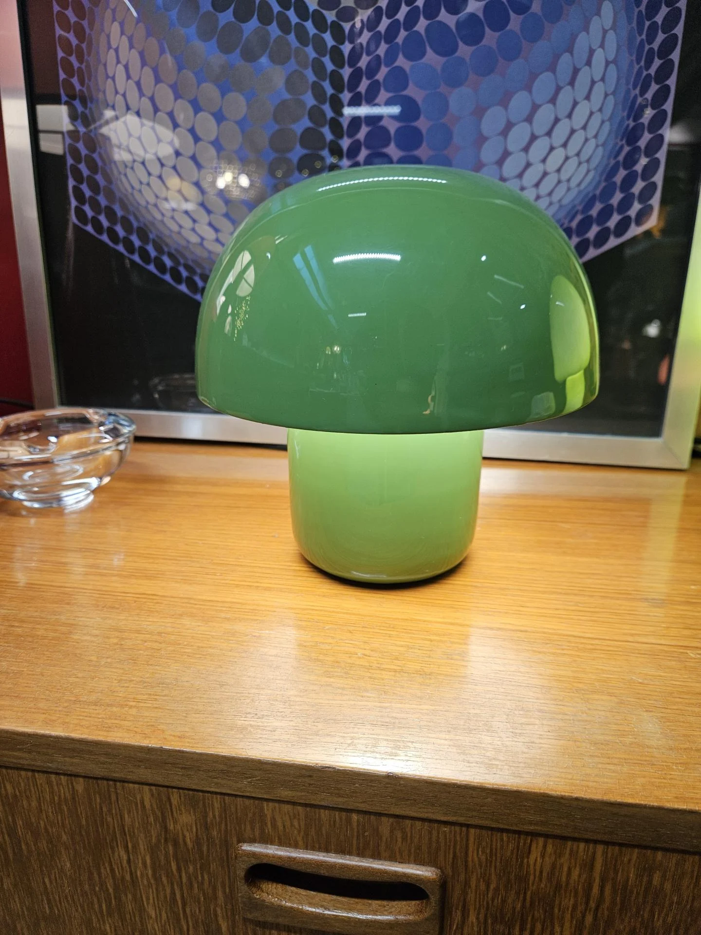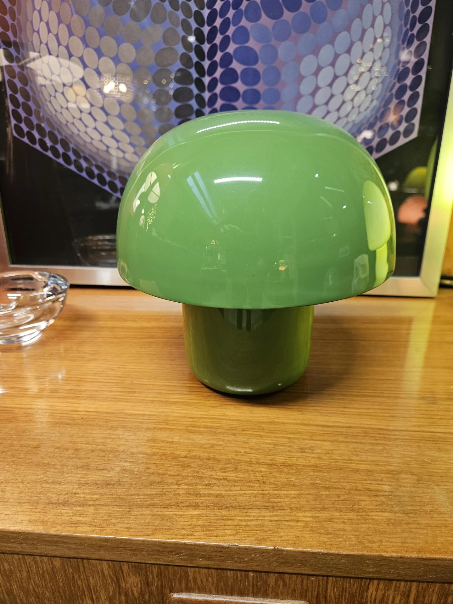 Lampe à poser champignon en métal laqué vert. Superbe pour créer une belle ambiance dans une chambre d'enfance ou pour un salon pop vintage. Hauteur 20 cm - Diamètre 18 cm.