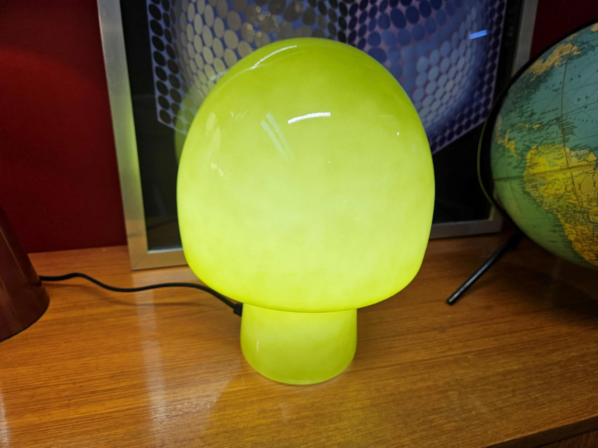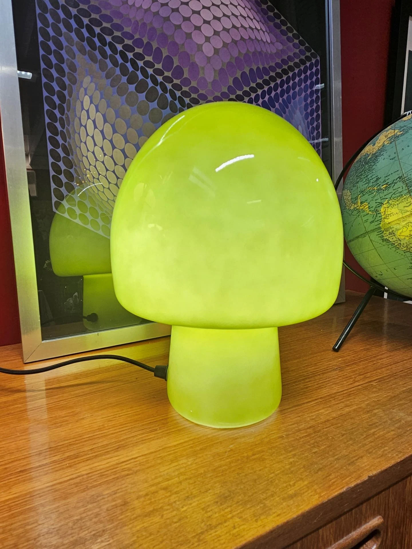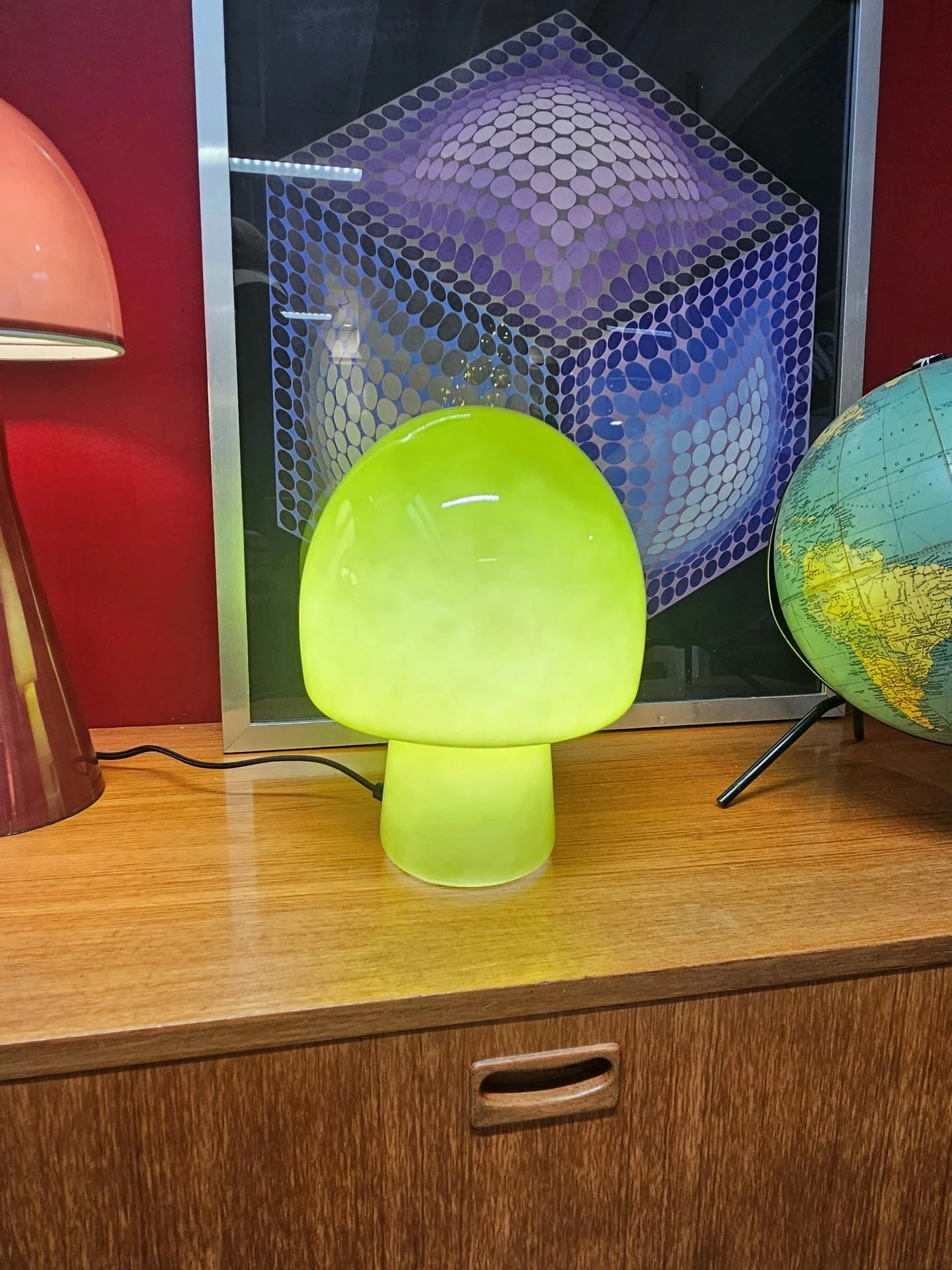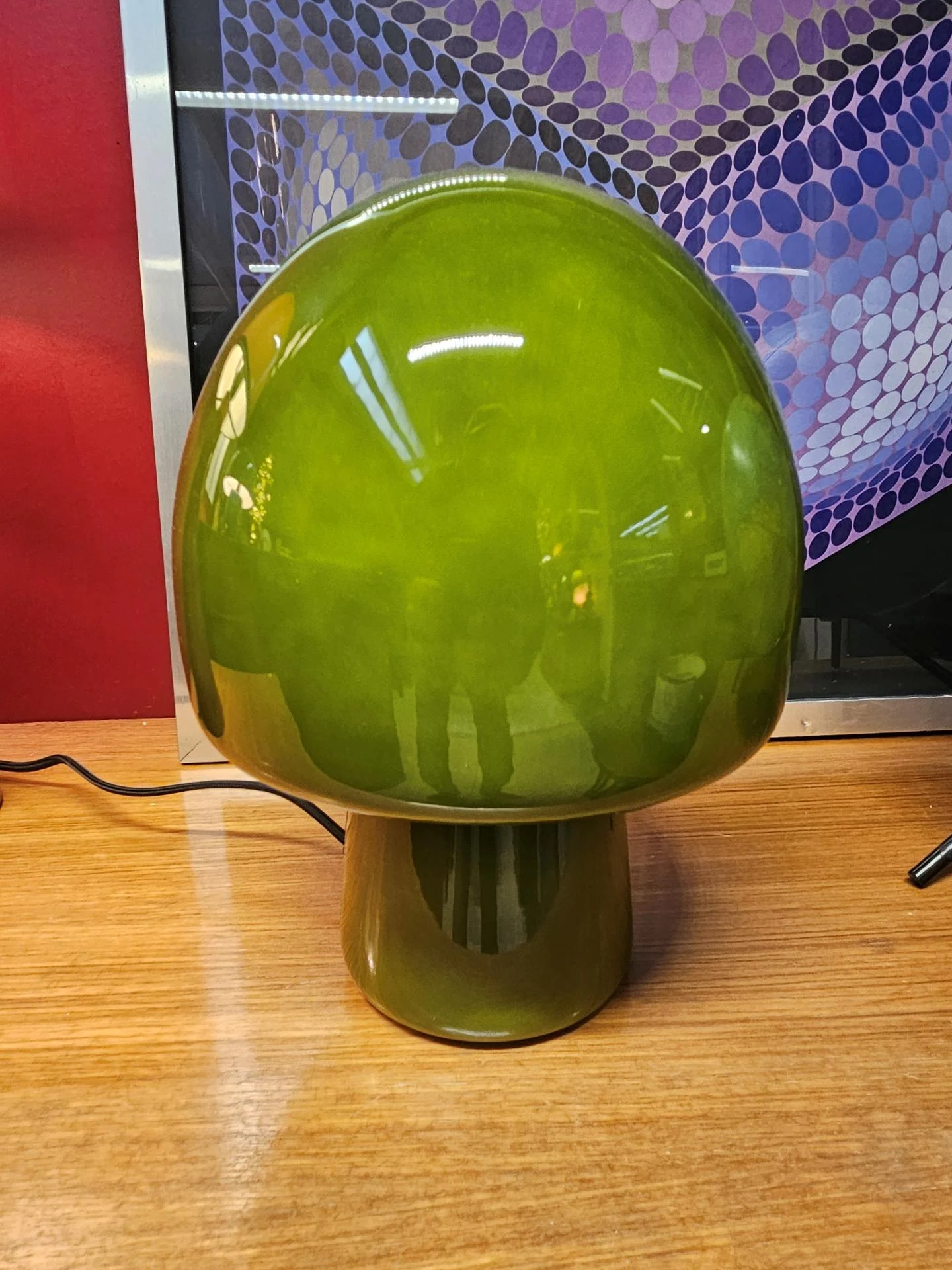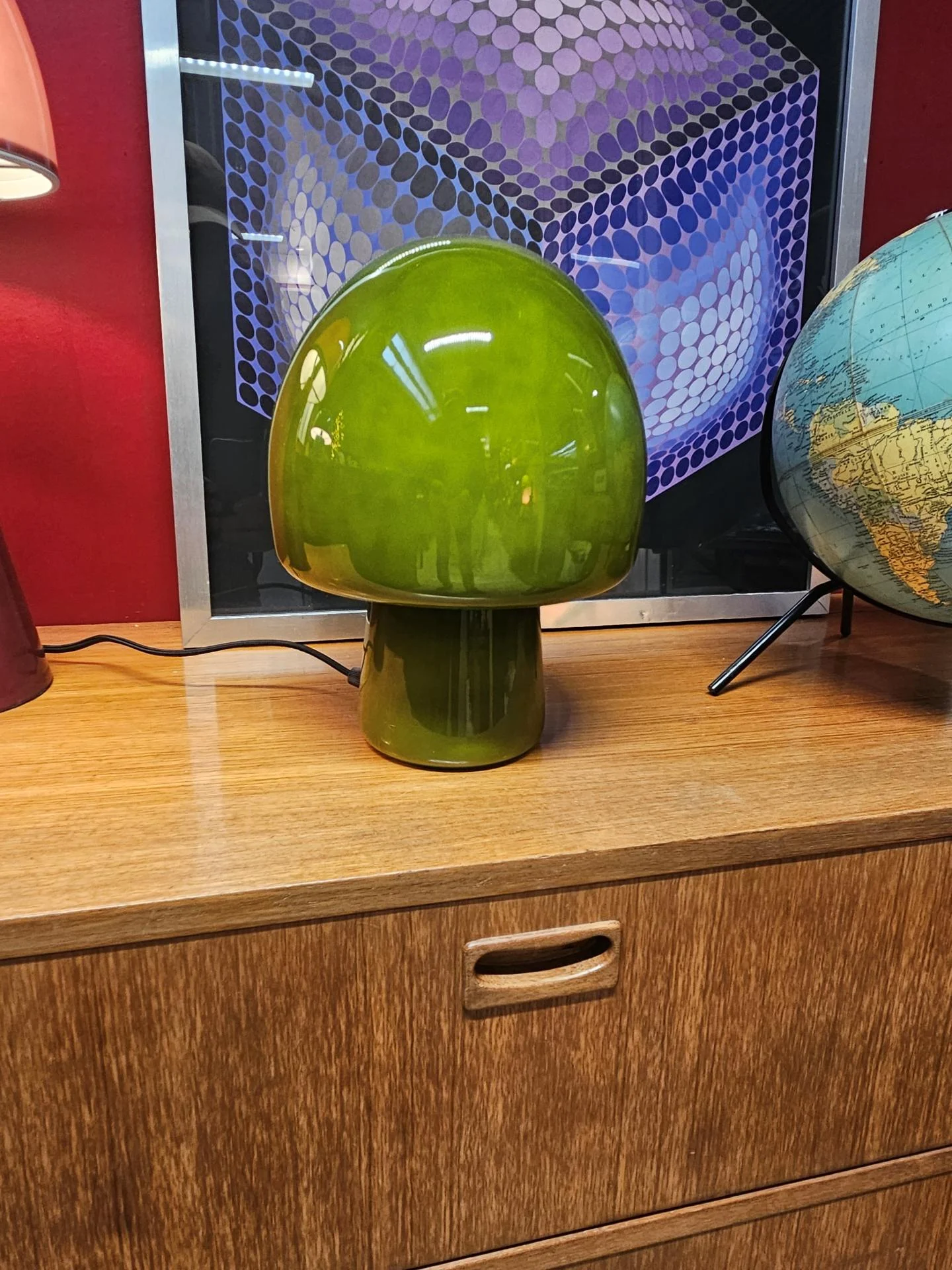 Lampe à poser en verre couleur verte brillante . Elégante, raffinée, son design et sa couleur donnera une touche à la fois naturelle et vintage. Allumée, elle sera encore plus belle et sublimera votre intérieur cocoonning. Hauteur 27 cm - Diamètre 20 cm. Ampoule à vis 25W