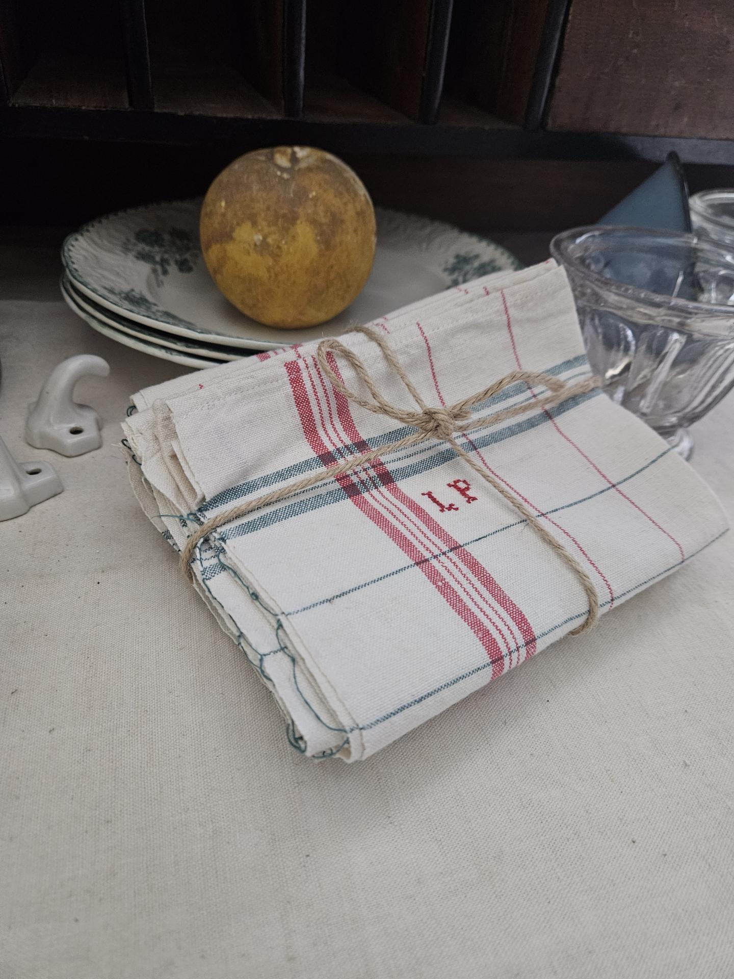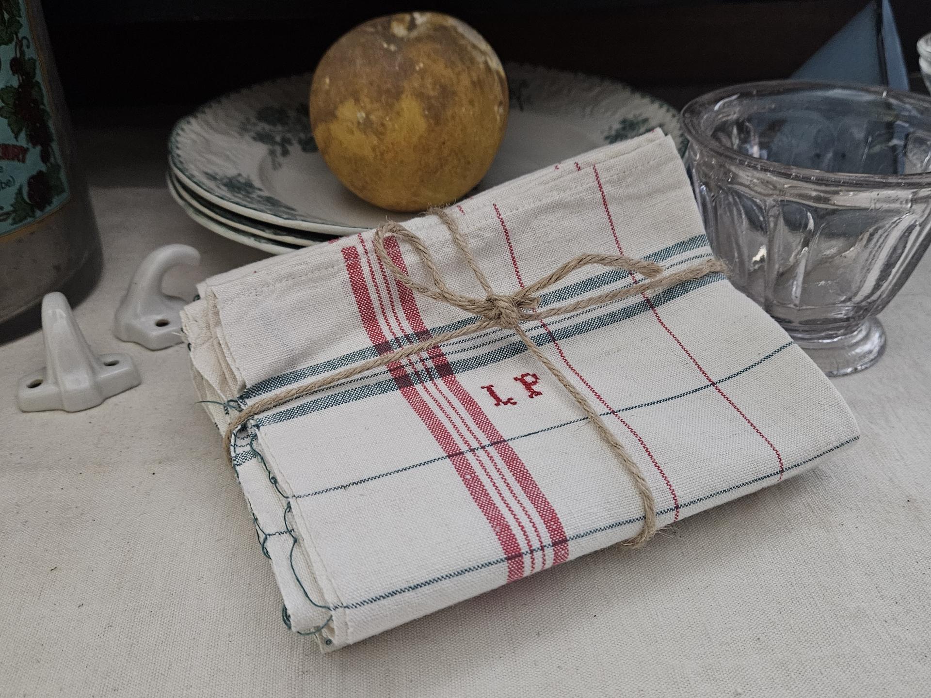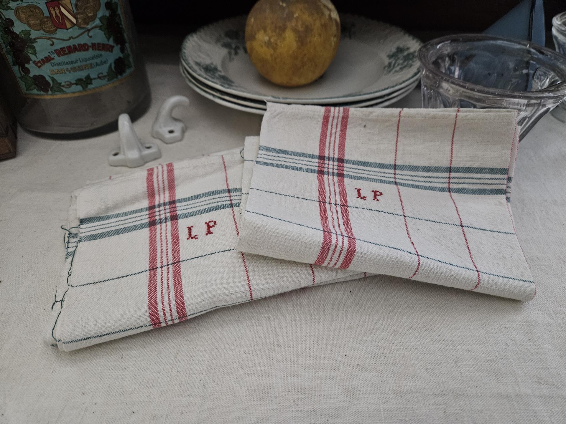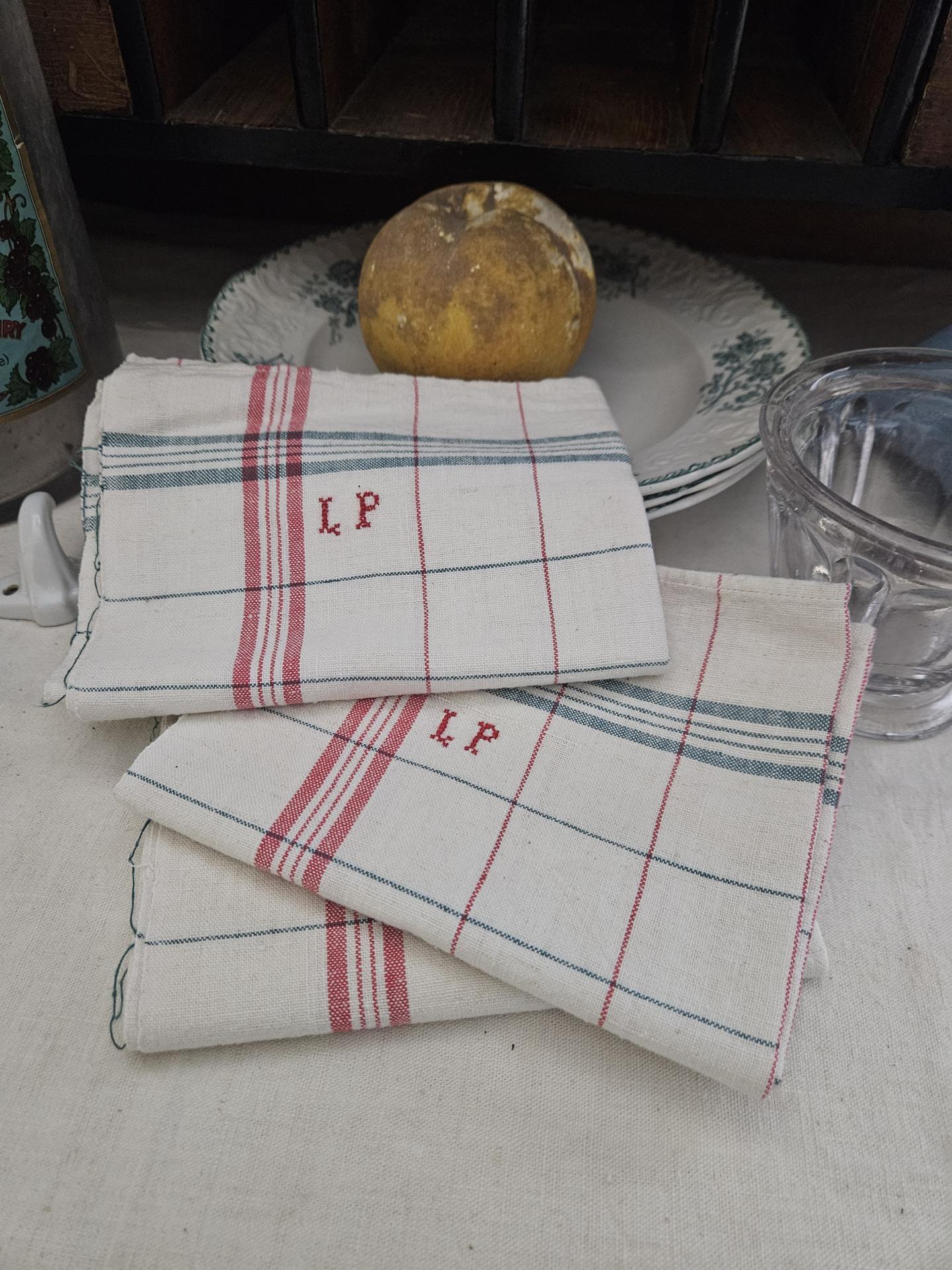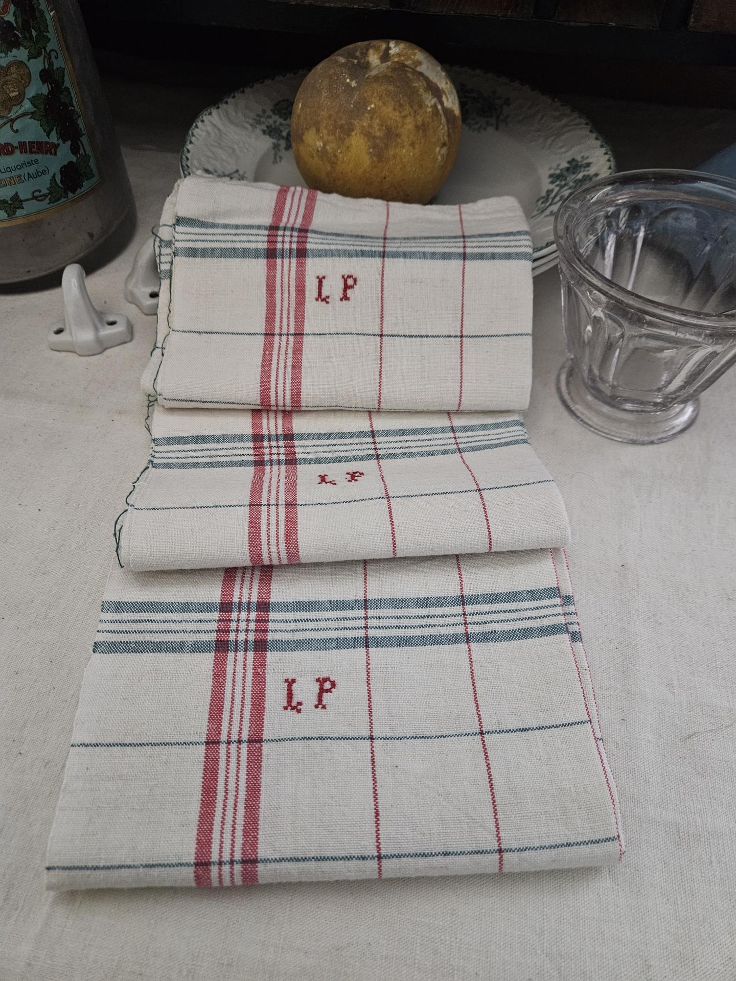 Lot de 3 torchons anciens à carreaux monogrammés L.P. Torchons propres et repassés état quasi neufs. Dimensions 66 cm x 52 cm. On les aime ces torchons de nos grand-mères, bien plus pratiques et de meilleure qualité que les torchons de maintenant !