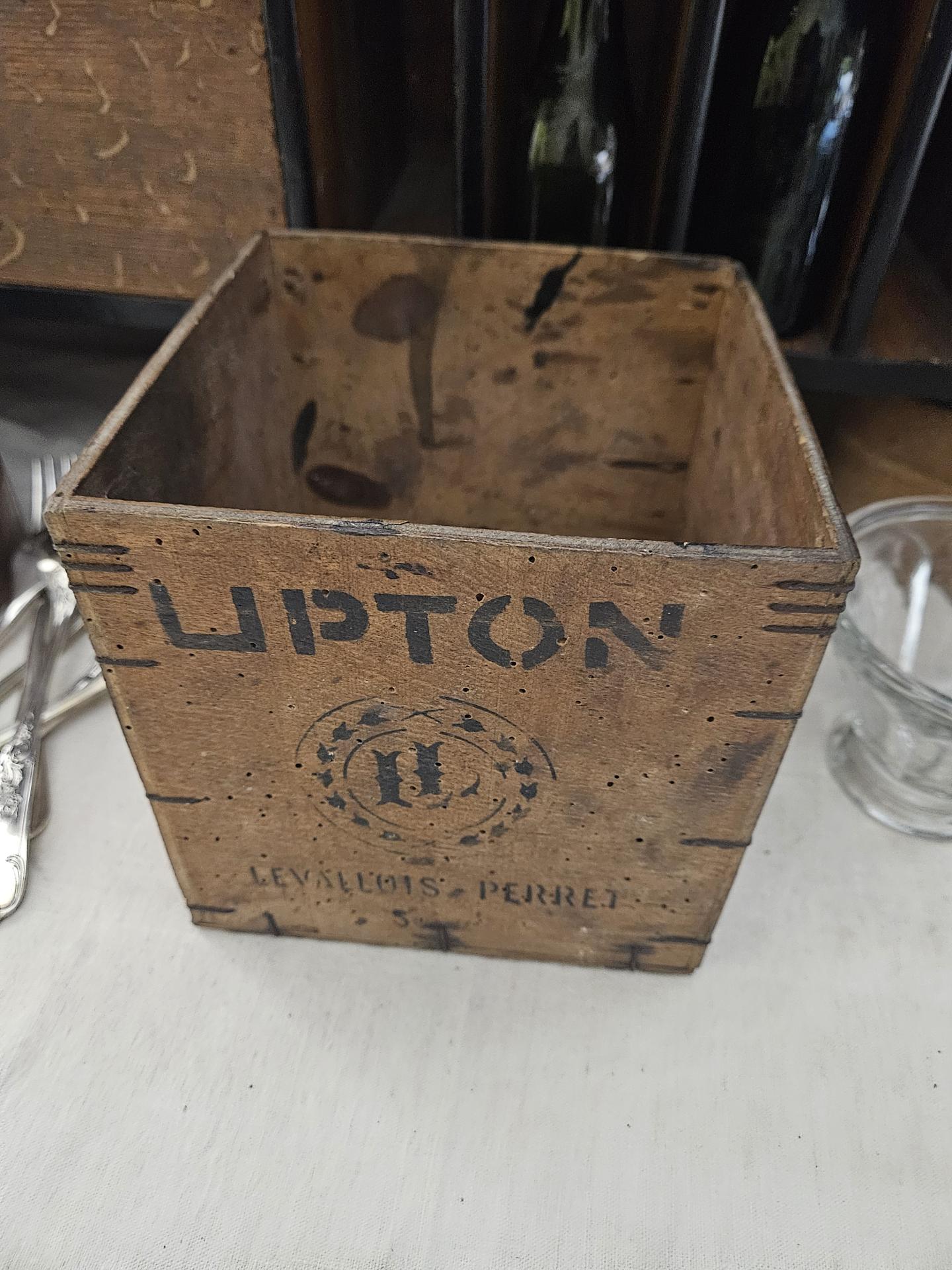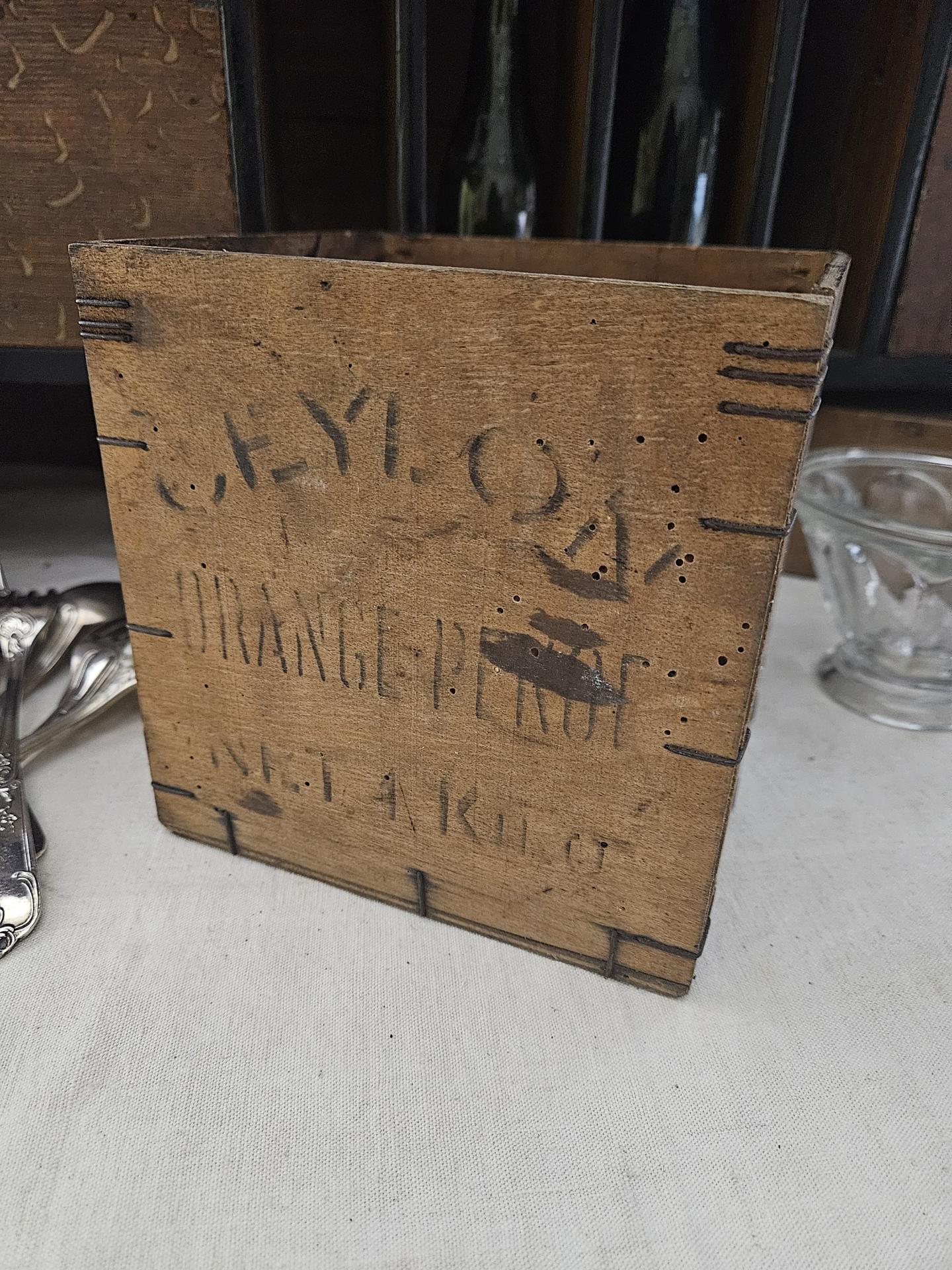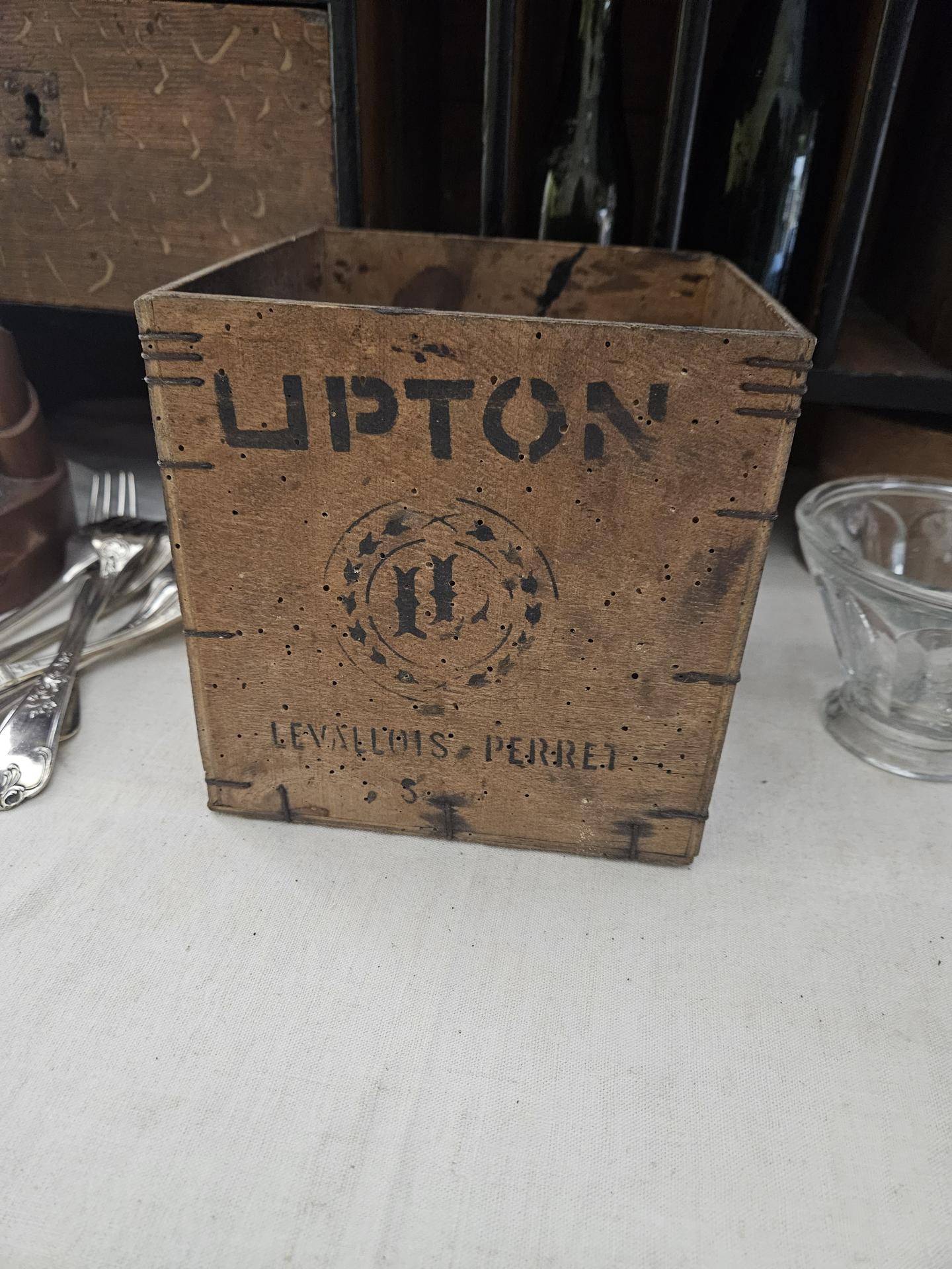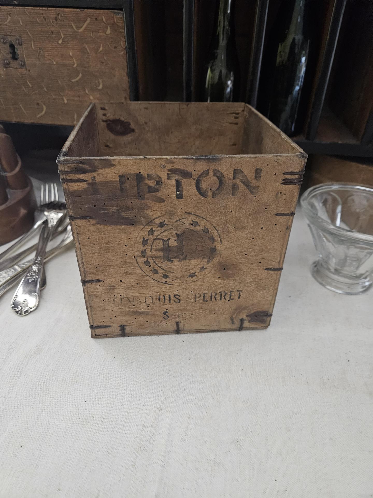 Boite à thé CEYLON Orange Pekoe Lipton. Boite en bois de 1kg en bel état. Dimensions 16 cm x 16 cm x 16 cm. Belle boite ancienne début 20ème, superbe en collection et décoration de cuisine ou de magasin.