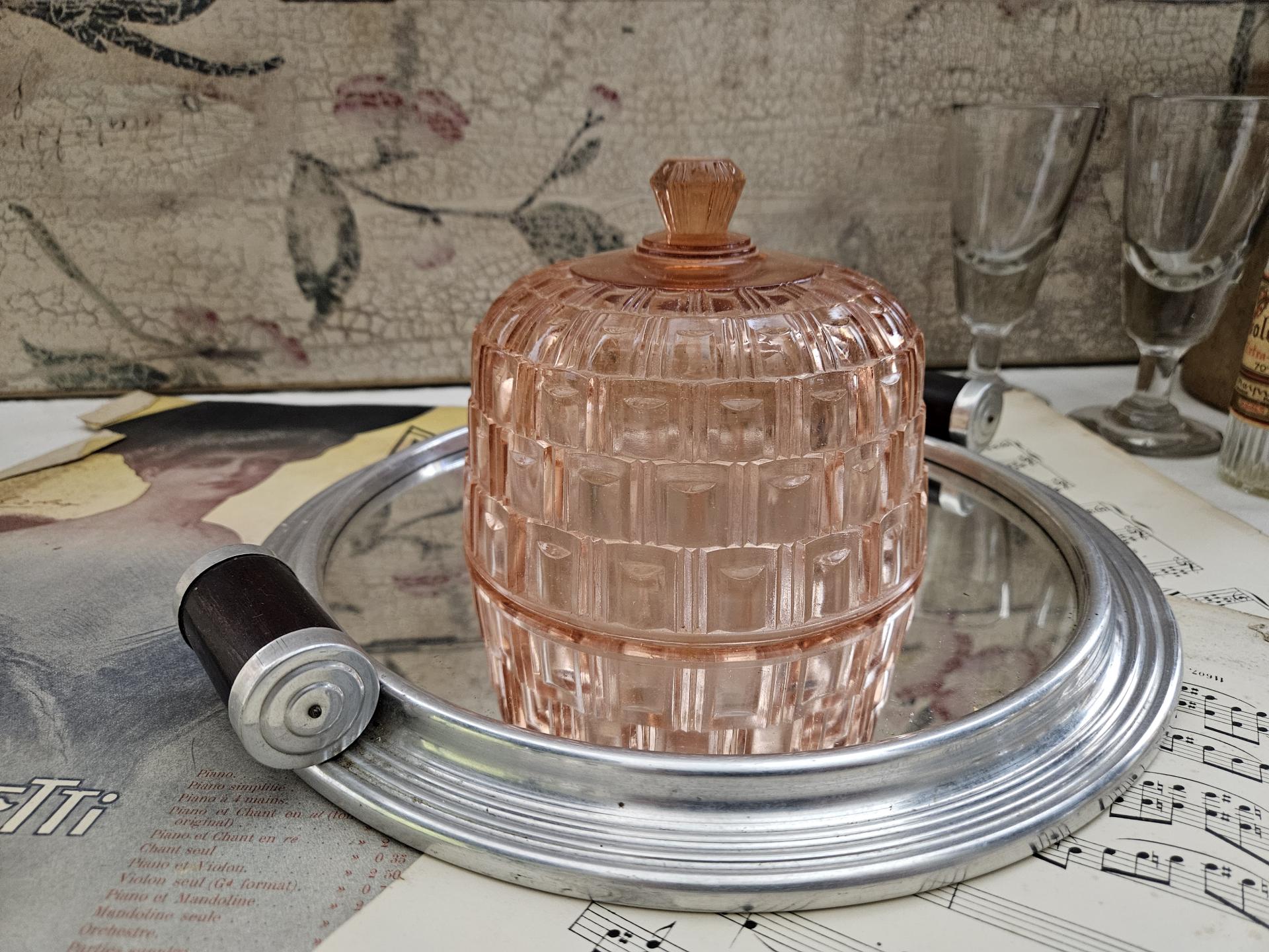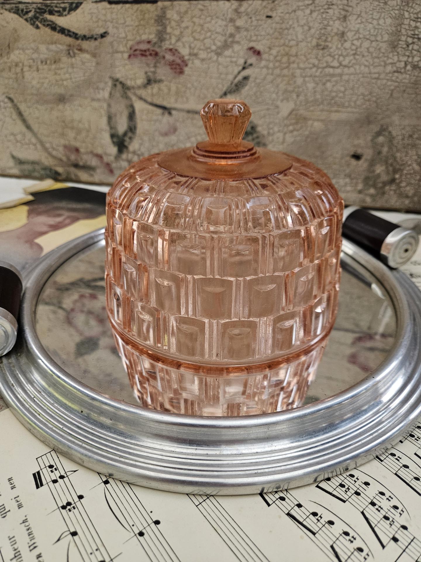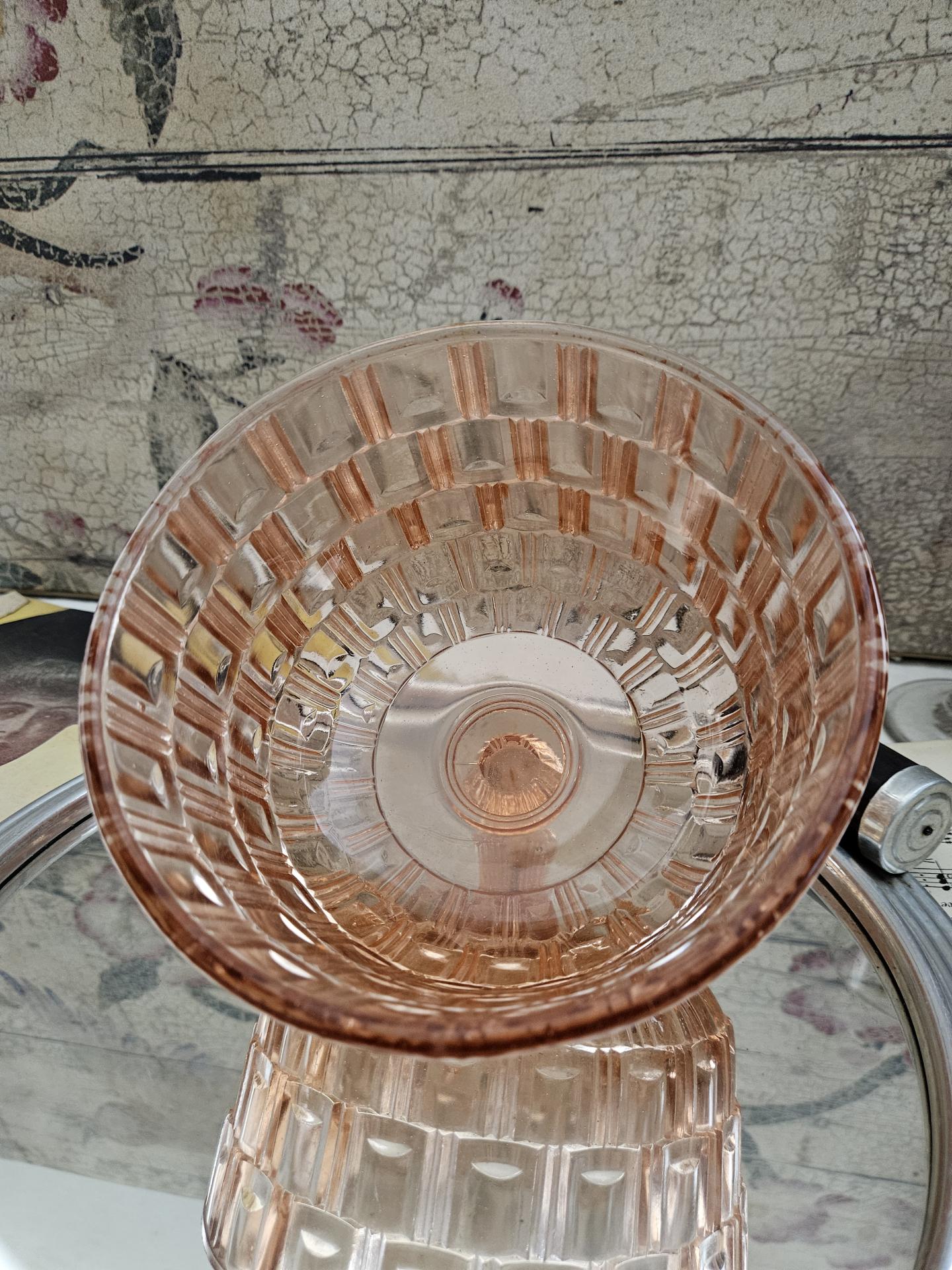 Ancienne cloche en verre rose. Joli modèle art déco en verre pressé moulé. Diamètre 16 cm - Hauteur 12 cm