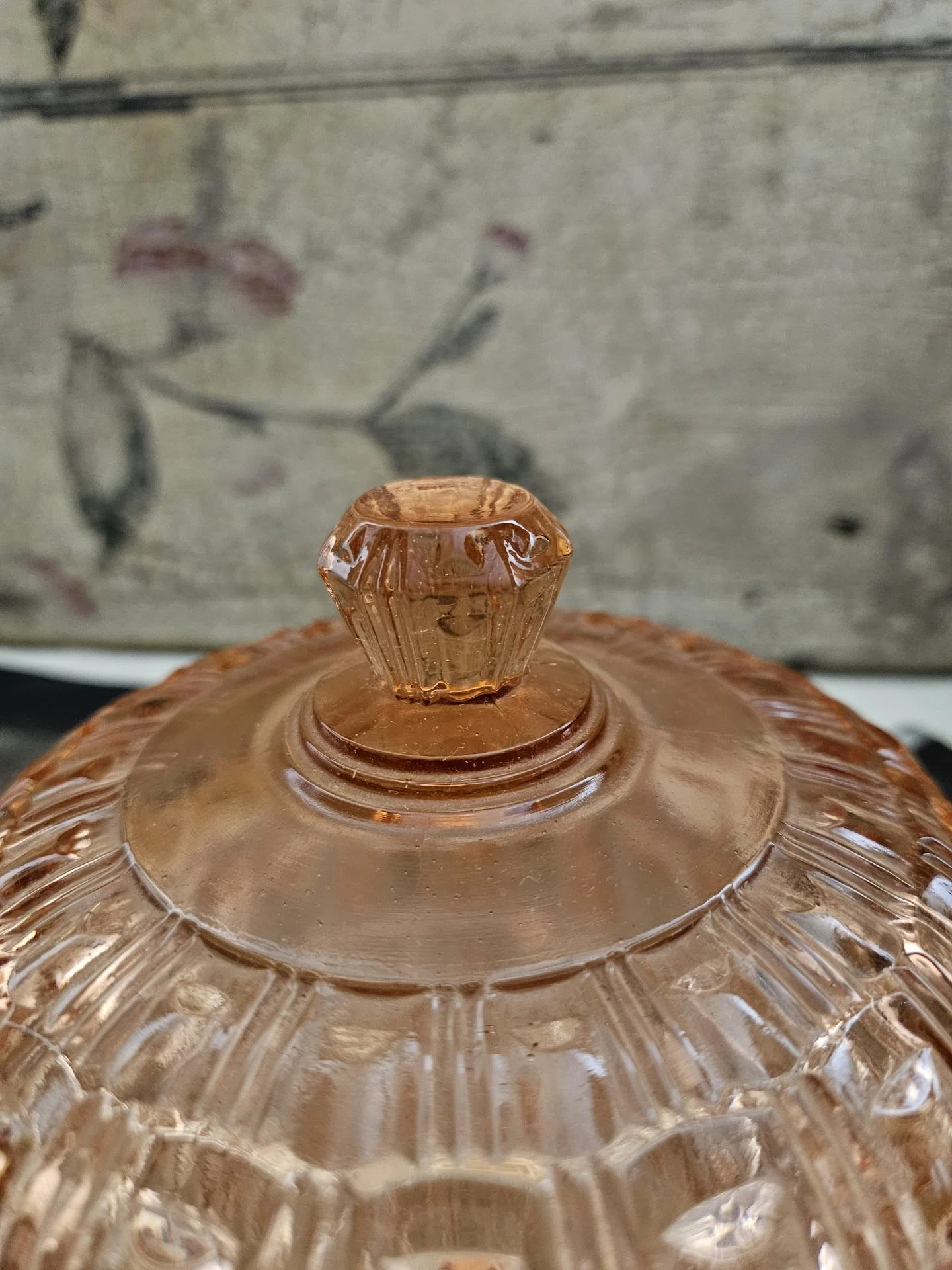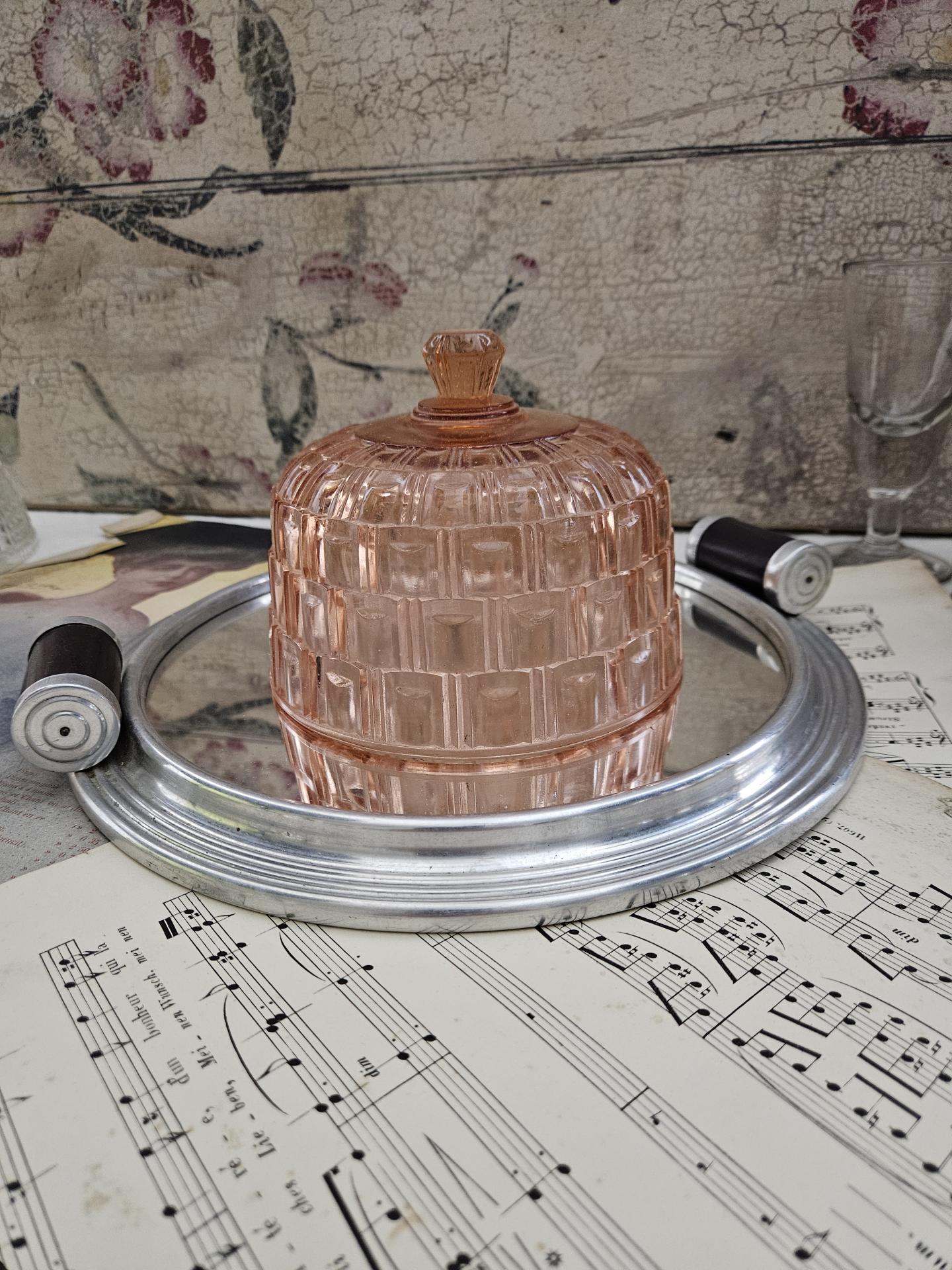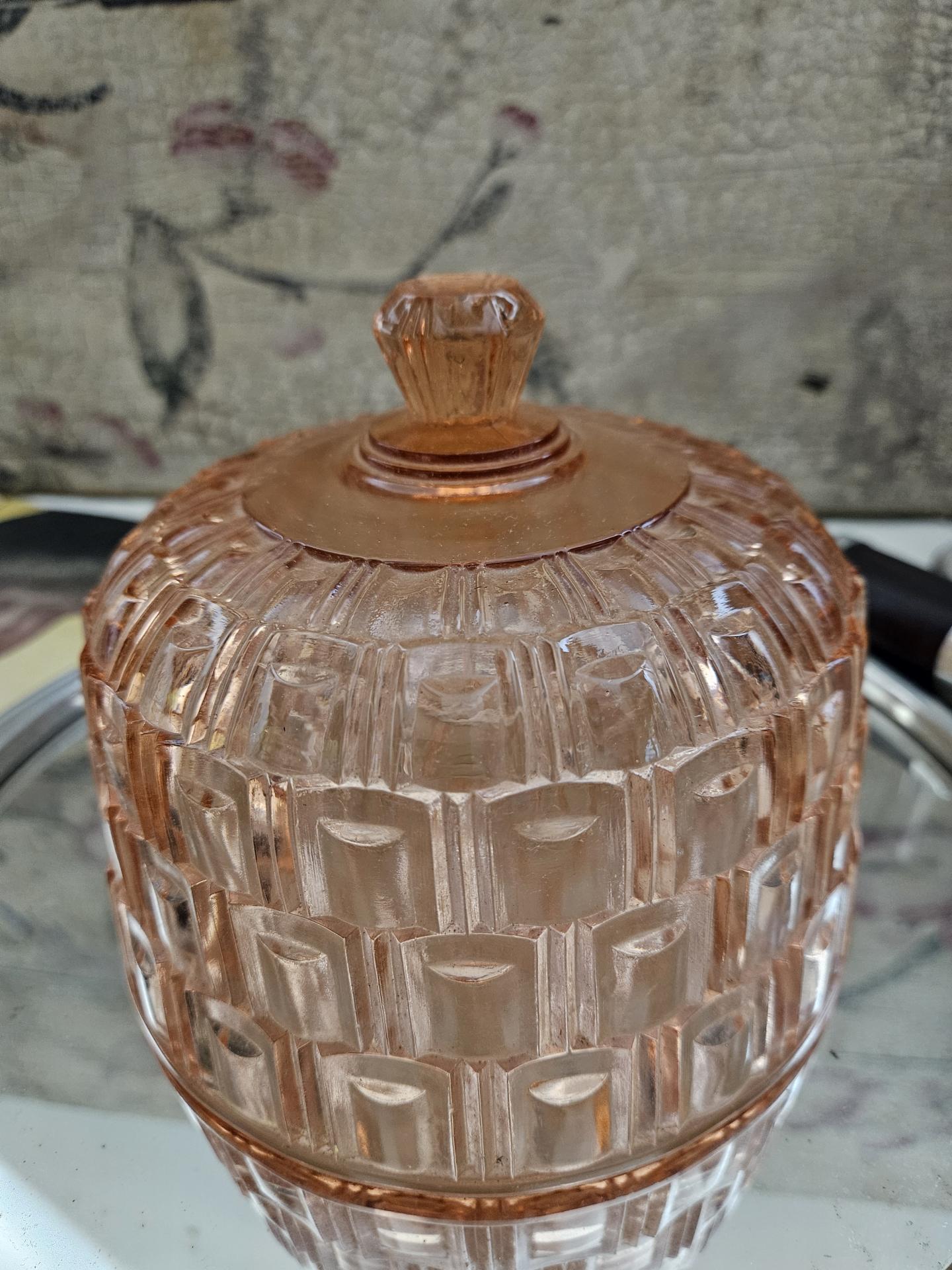 Ancienne cloche en verre rose. Joli modèle art déco en verre pressé moulé. Diamètre 16 cm - Hauteur 12 cm