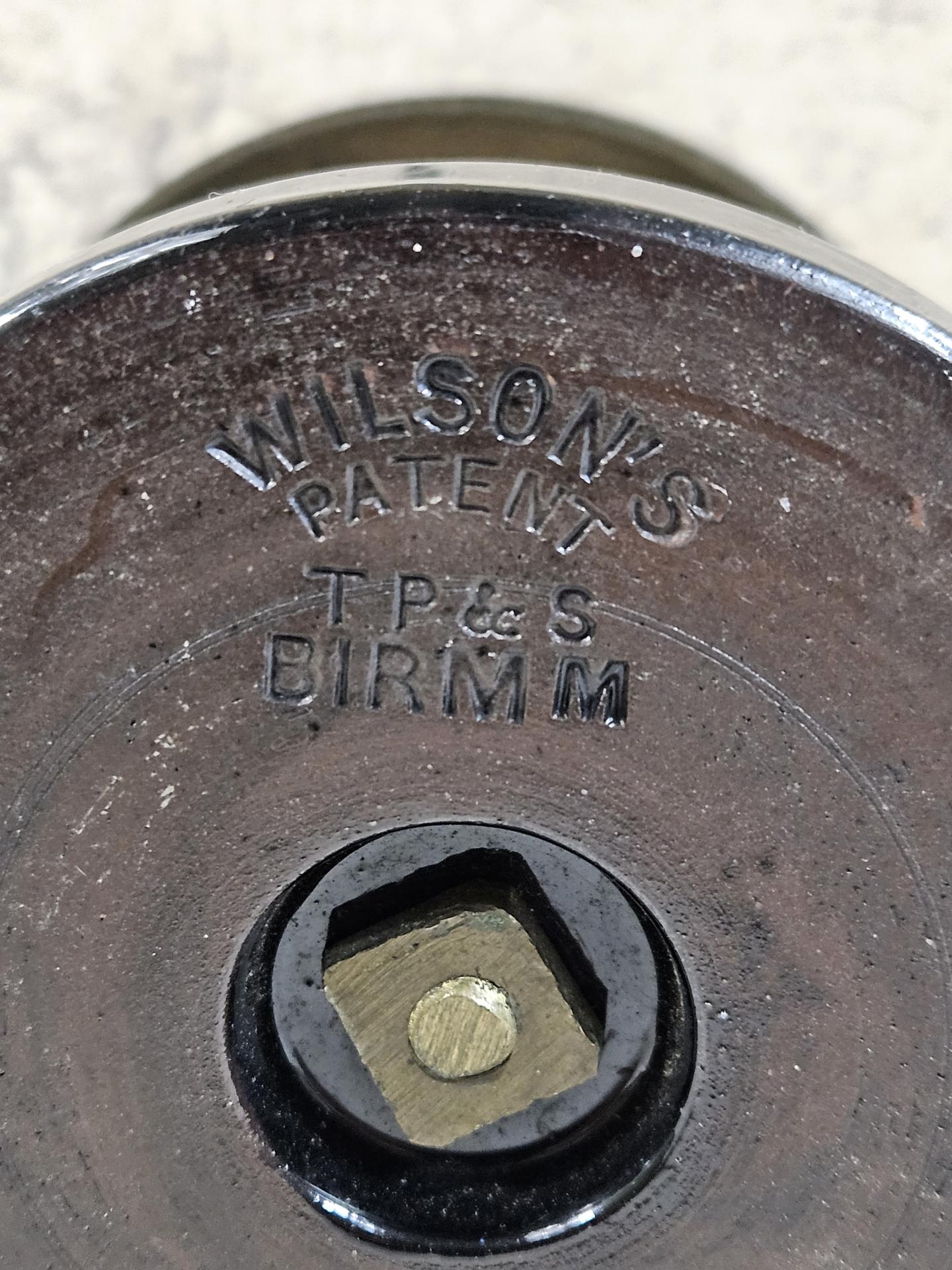 Cloche de comptoir Wilson's Patent TP & S Birmm. Cloche en bel état avec une très jolie patine. Hauteur 13 cm - Diamètre 9 cm