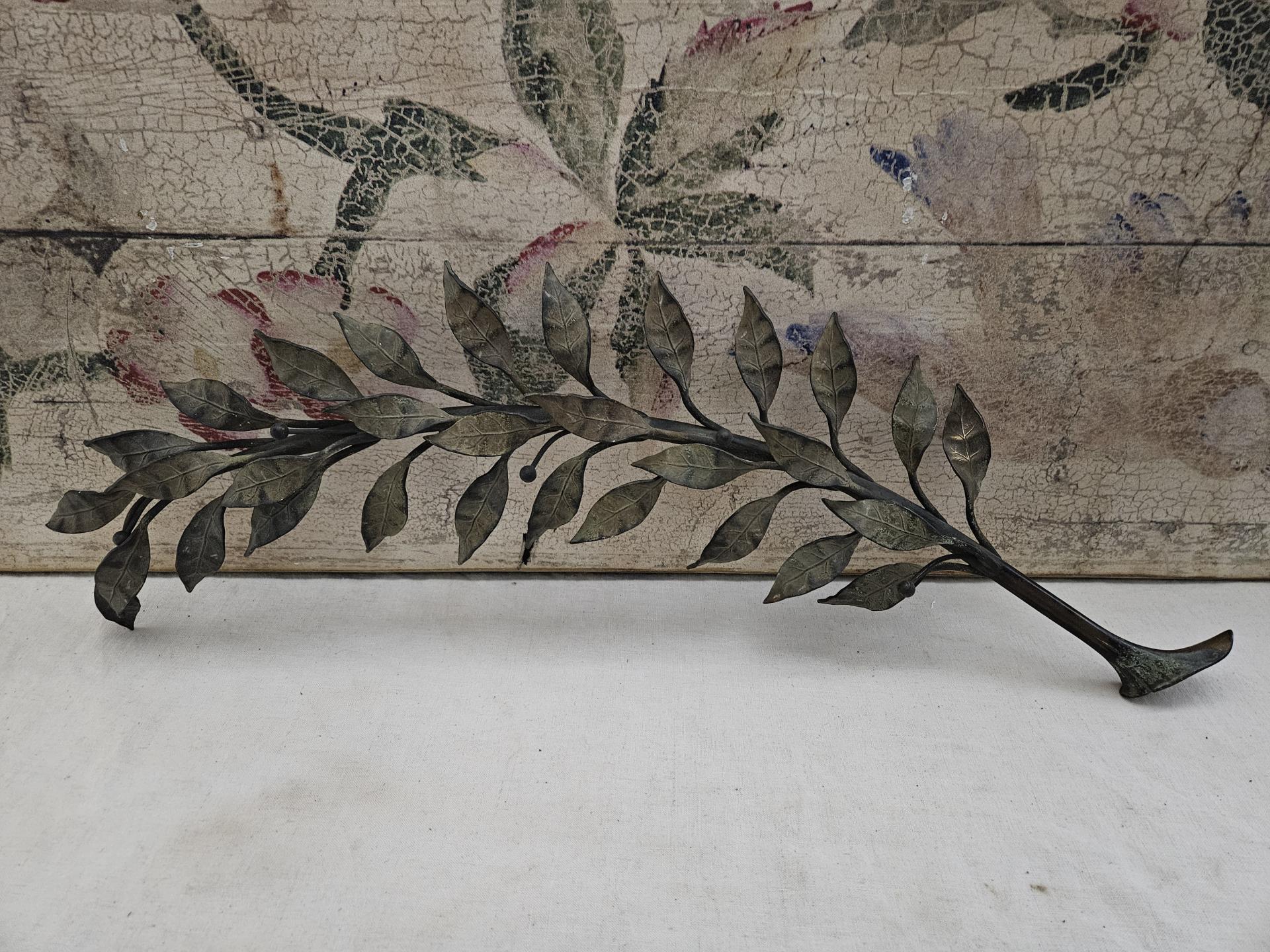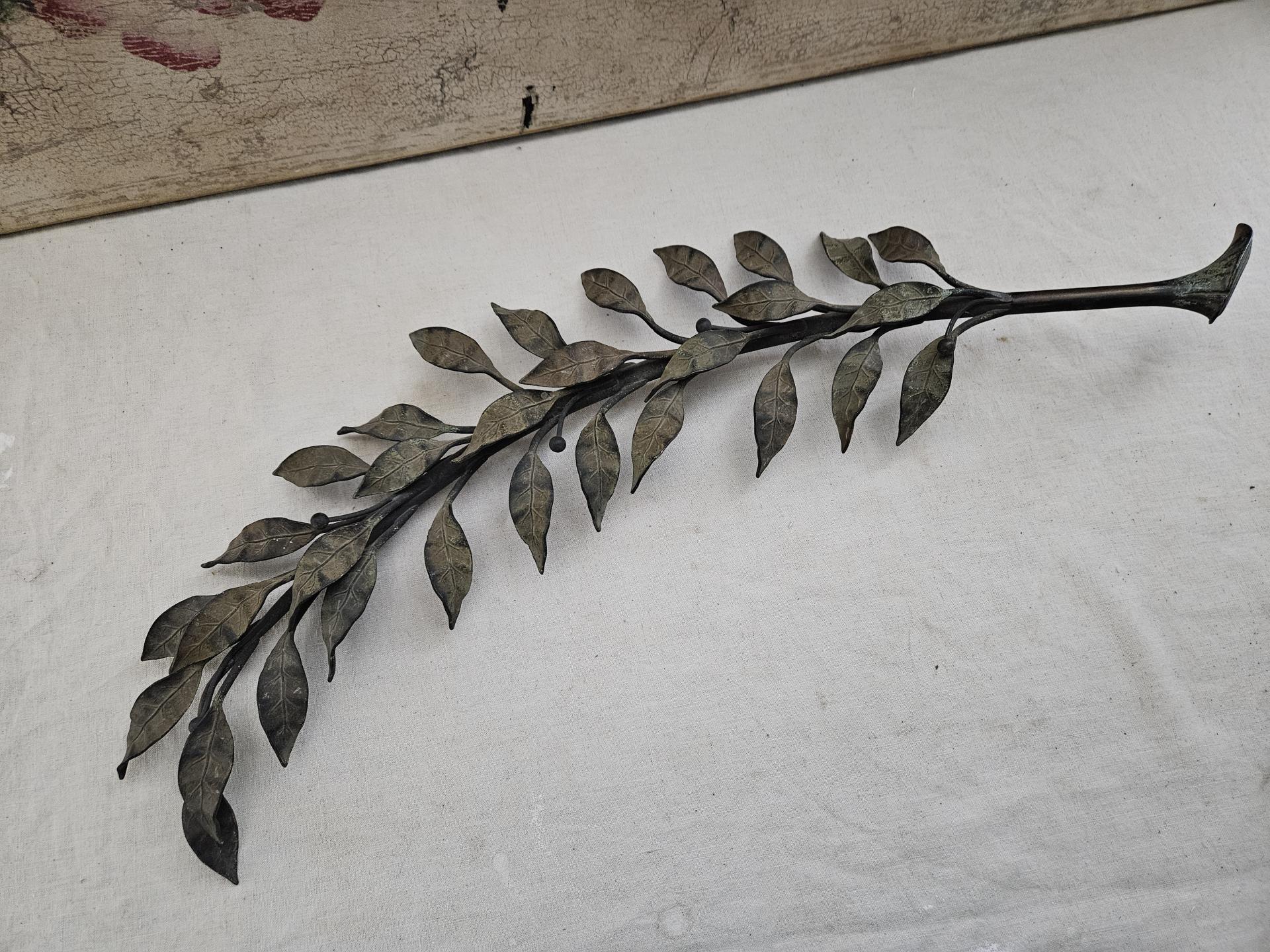 Palme de laurier en bronze. Ornement en bel état avec une belle patine. 2 trous de fixation à l'arrière. Longueur 65 cm - Largeur 25 cm - Profondeur 8 cm
