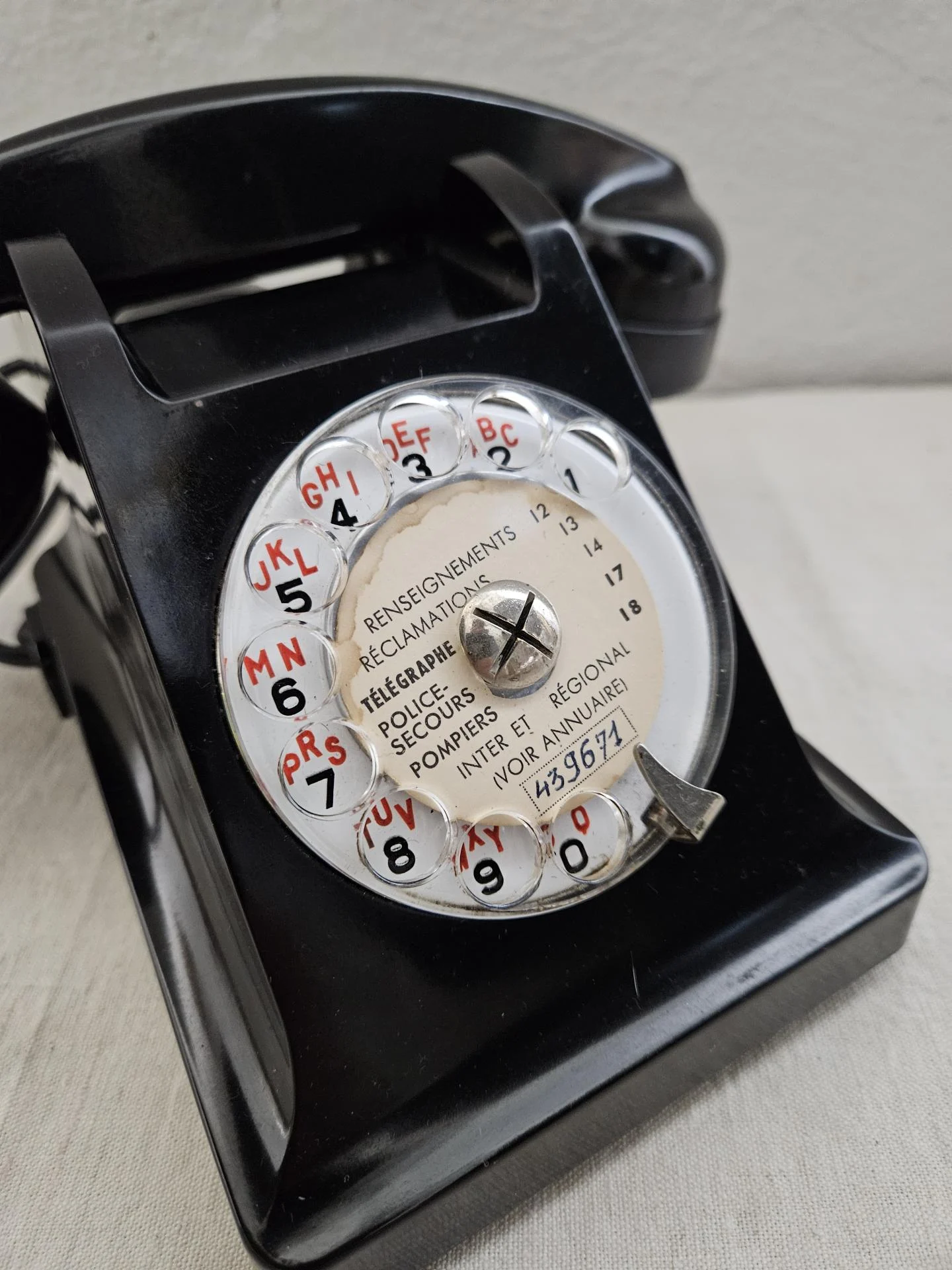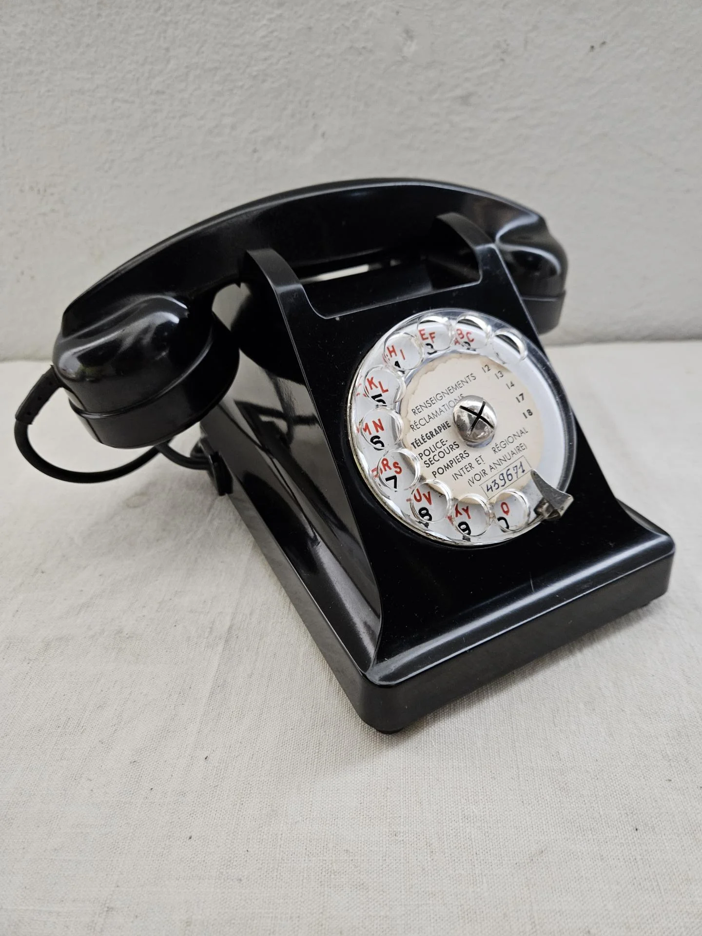 Téléphone noir en bakélite des années 1960. Modèle BCI. Très bon état, bakélite bien brillant. Ce téléphone ne fonctionne pas avec une box internet uniquement avec un abonnement classique. Superbe Téléphone pour une belle déco vintage...