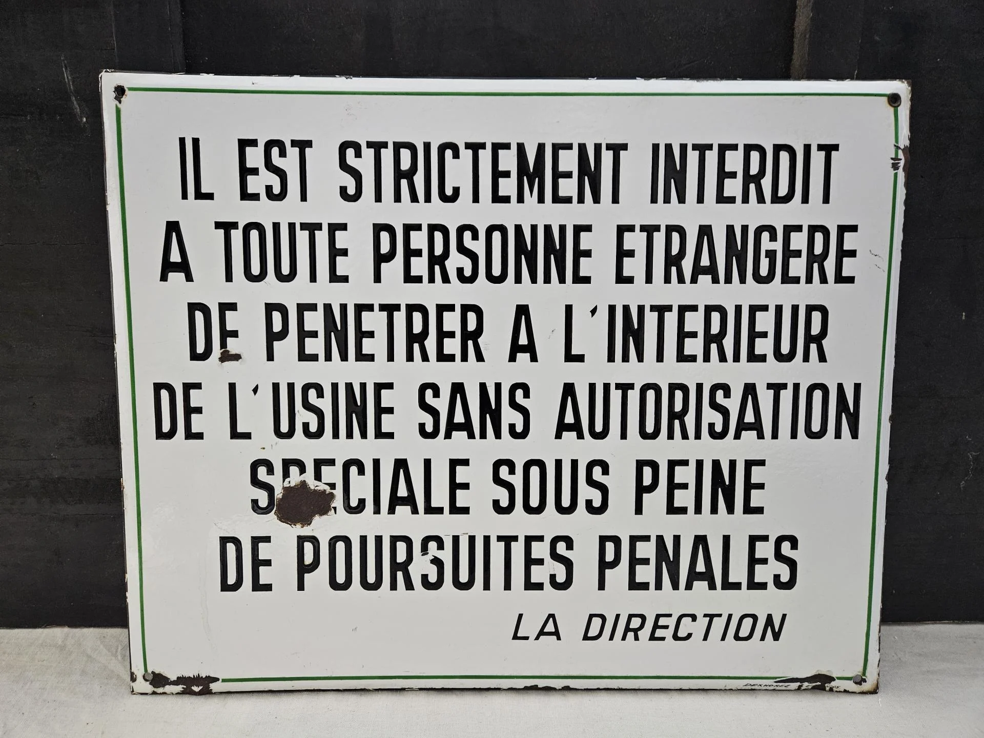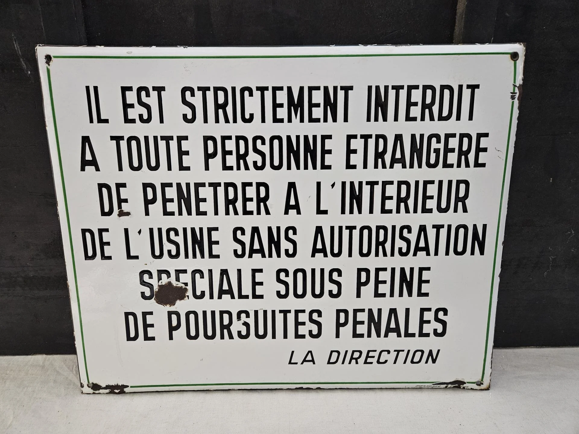 Plaque émaillée d'usine
