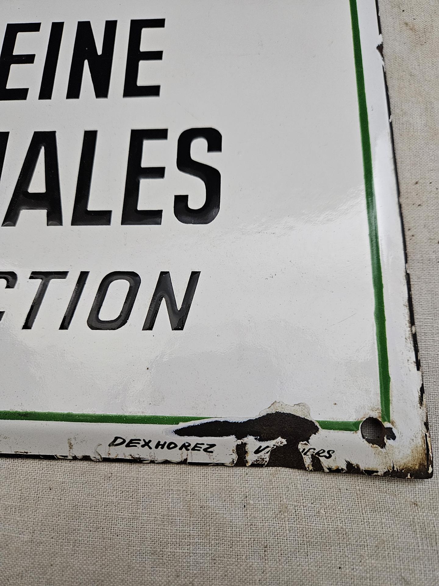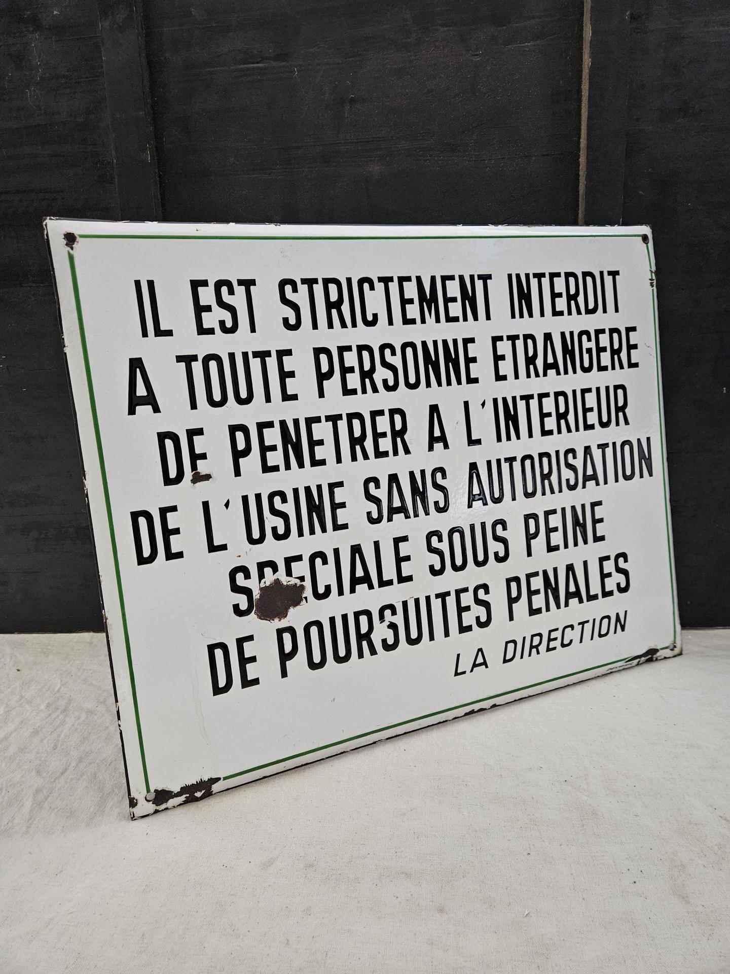 Ancienne plaque émaillée de consignes provenant d'une ancienne usine de produits chimiques. Plaque en bel état, avec quelques sauts d'émail par endroits. Dimensions 50 cm x 40 cm.