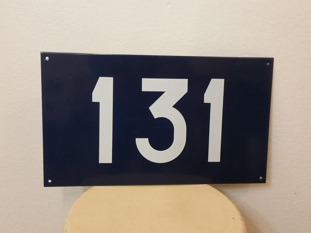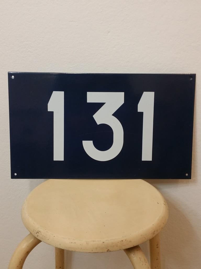 Ancienne plaque émaillée SNCF numéro 131. Plaque de signalisation en bel état avec de belles couleurs. Trous de fixation murale. Dimension 43 cm x 20 cm.