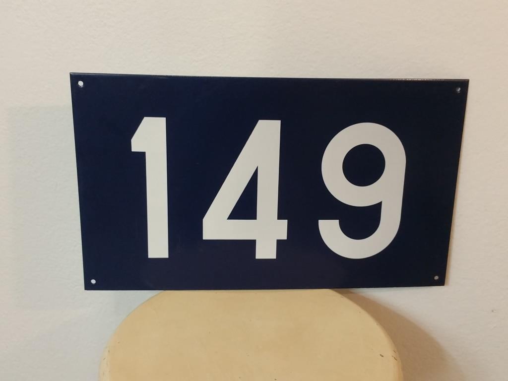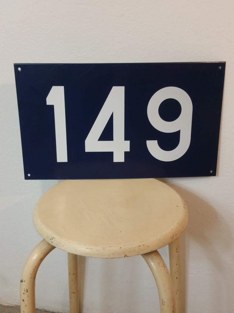 Ancienne plaque émaillée SNCF numéro 149. Plaque de signalisation en bel état avec de belles couleurs. Trous de fixation murale. Dimension 43 cm x 20 cm.